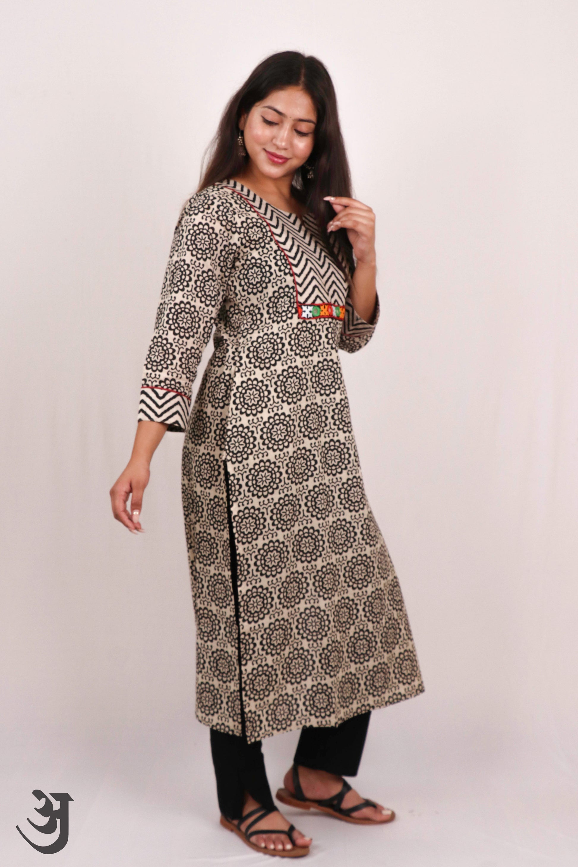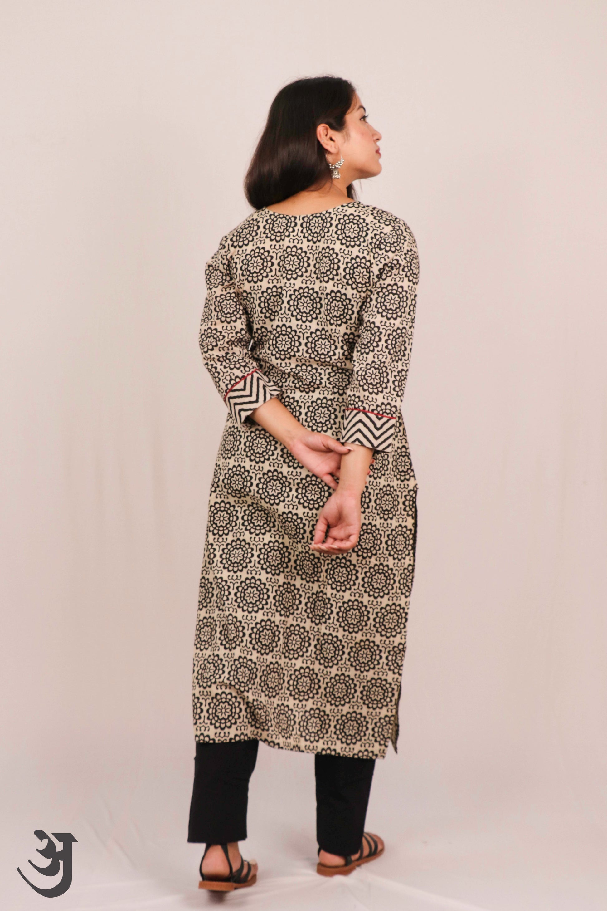 Black - White Block Printed Kurti