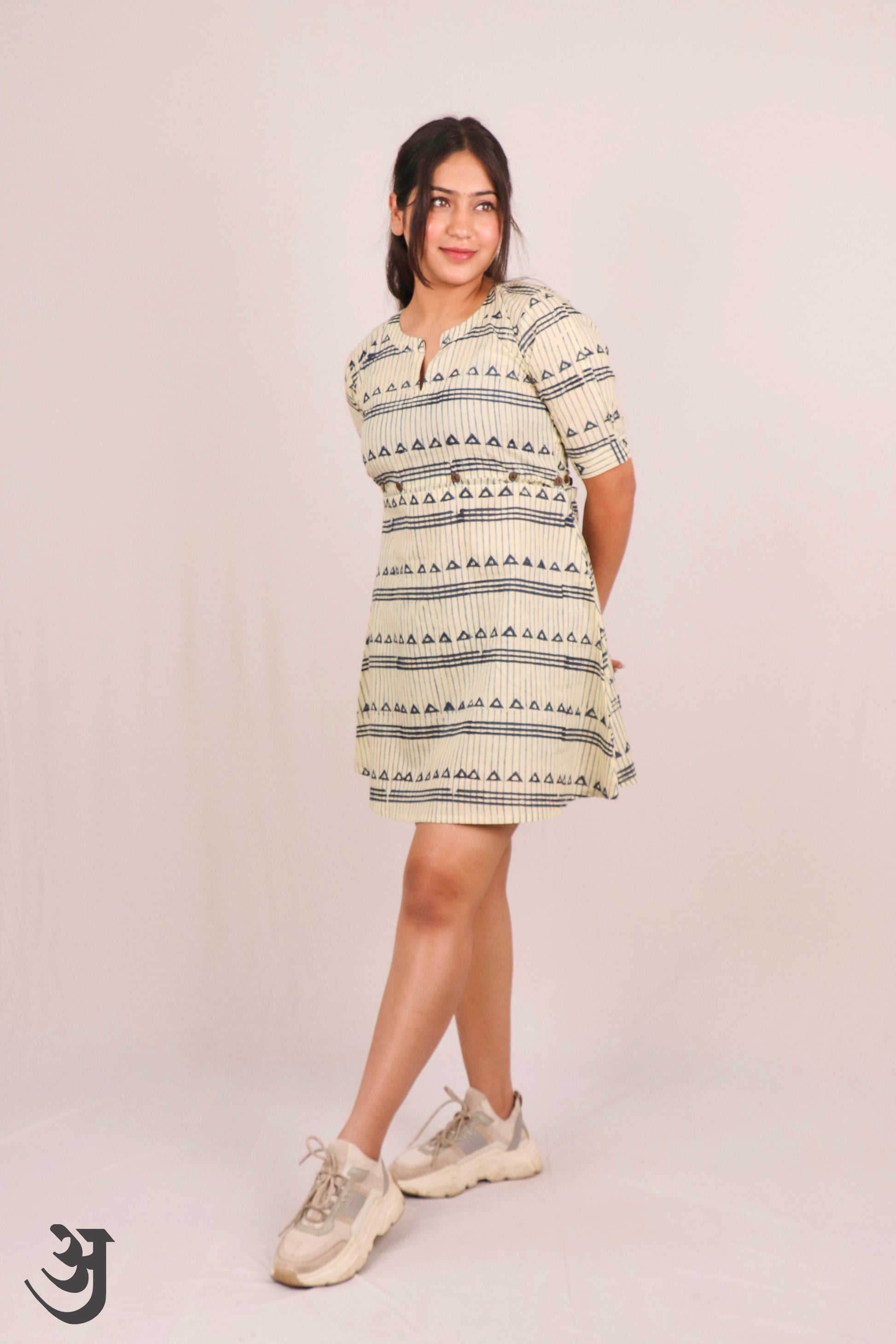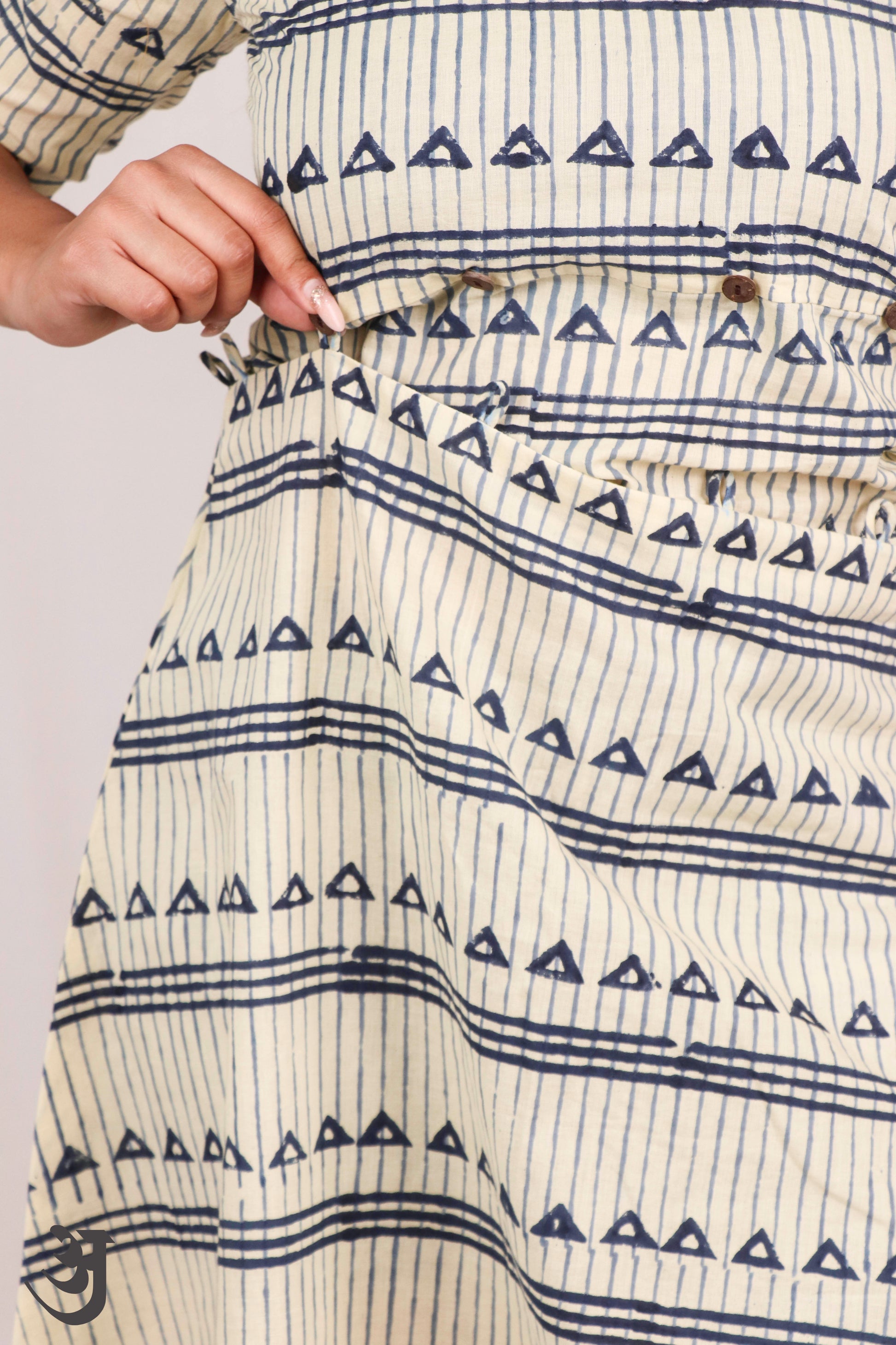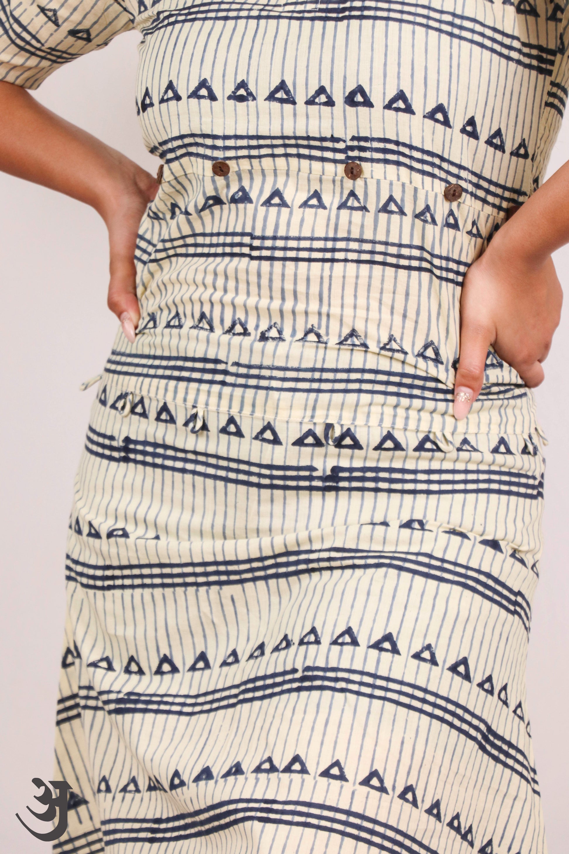 Experience versatility and luxury with our Cream Bagru Print Convertible One Piece. Crafted from soft cotton, this piece can effortlessly transform from a short to long style, giving you endless styling options. Elevate your wardrobe with this exclusive and sophisticated addition.