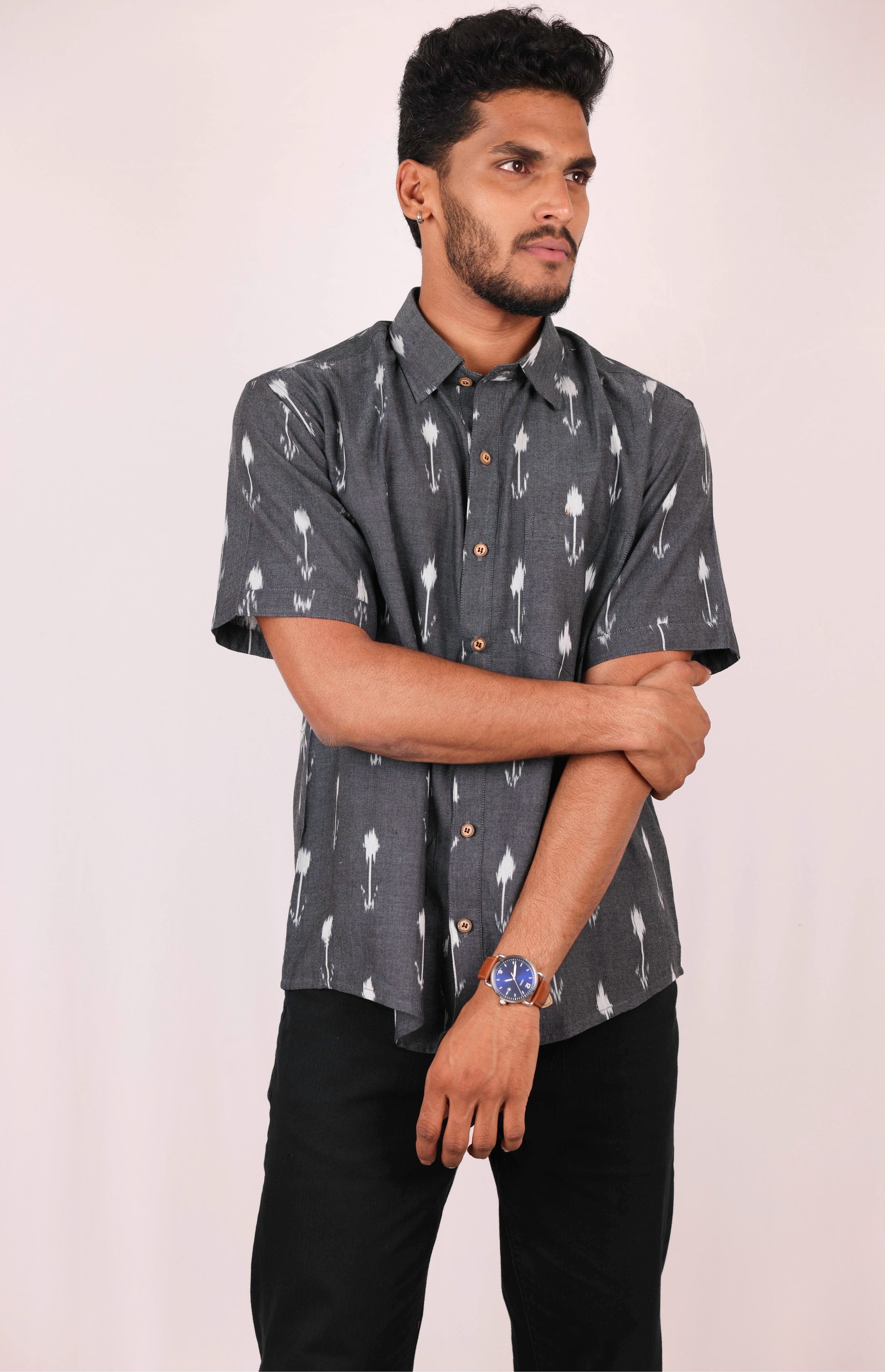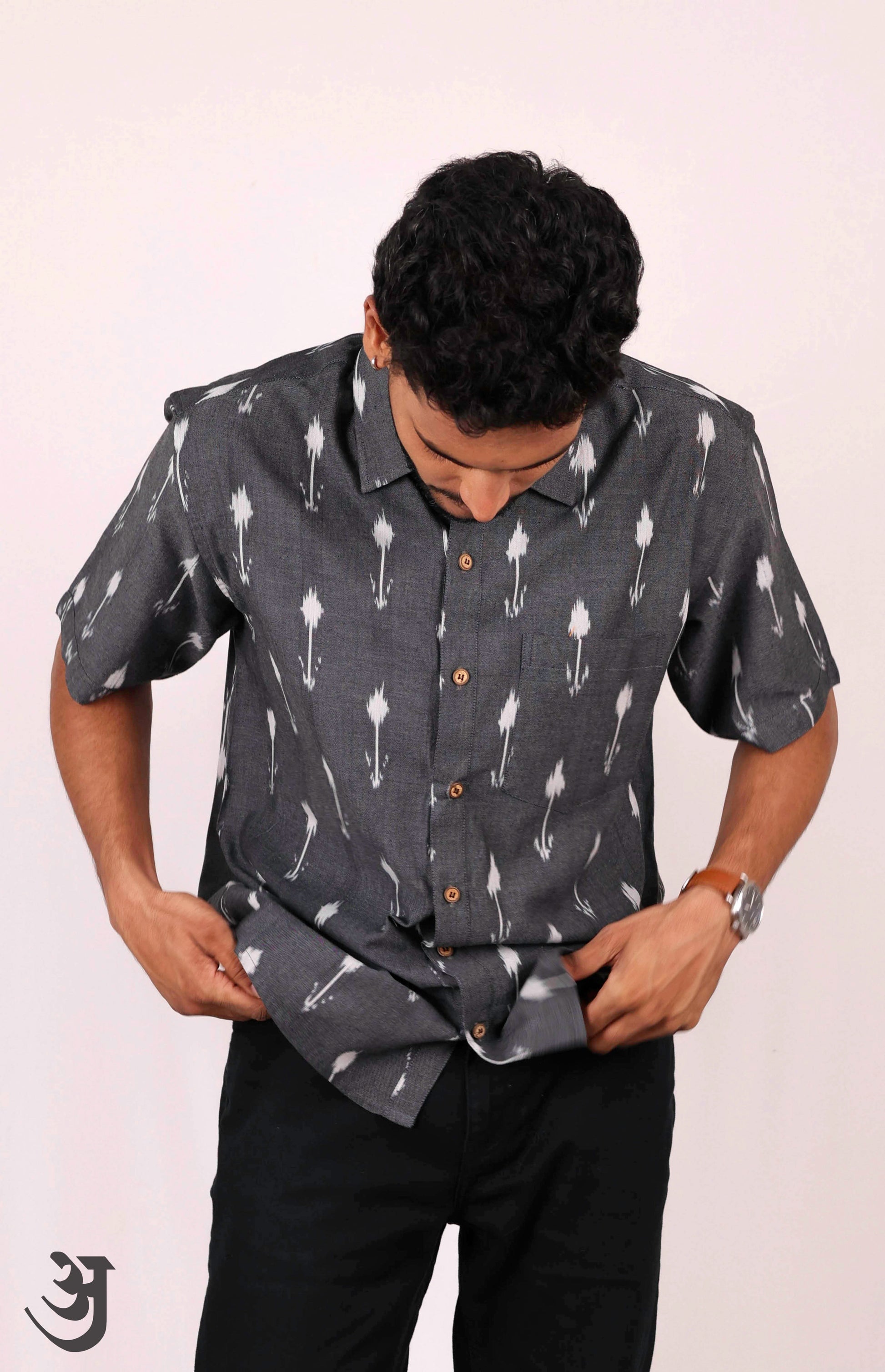 Stay stylish and comfortable in our Dark Grey Ikat Shirt. Made from soft and breathable cotton with a unique handloom design, this shirt is perfect for any occasion. Let the bold print and dark grey color stand out in your wardrobe.