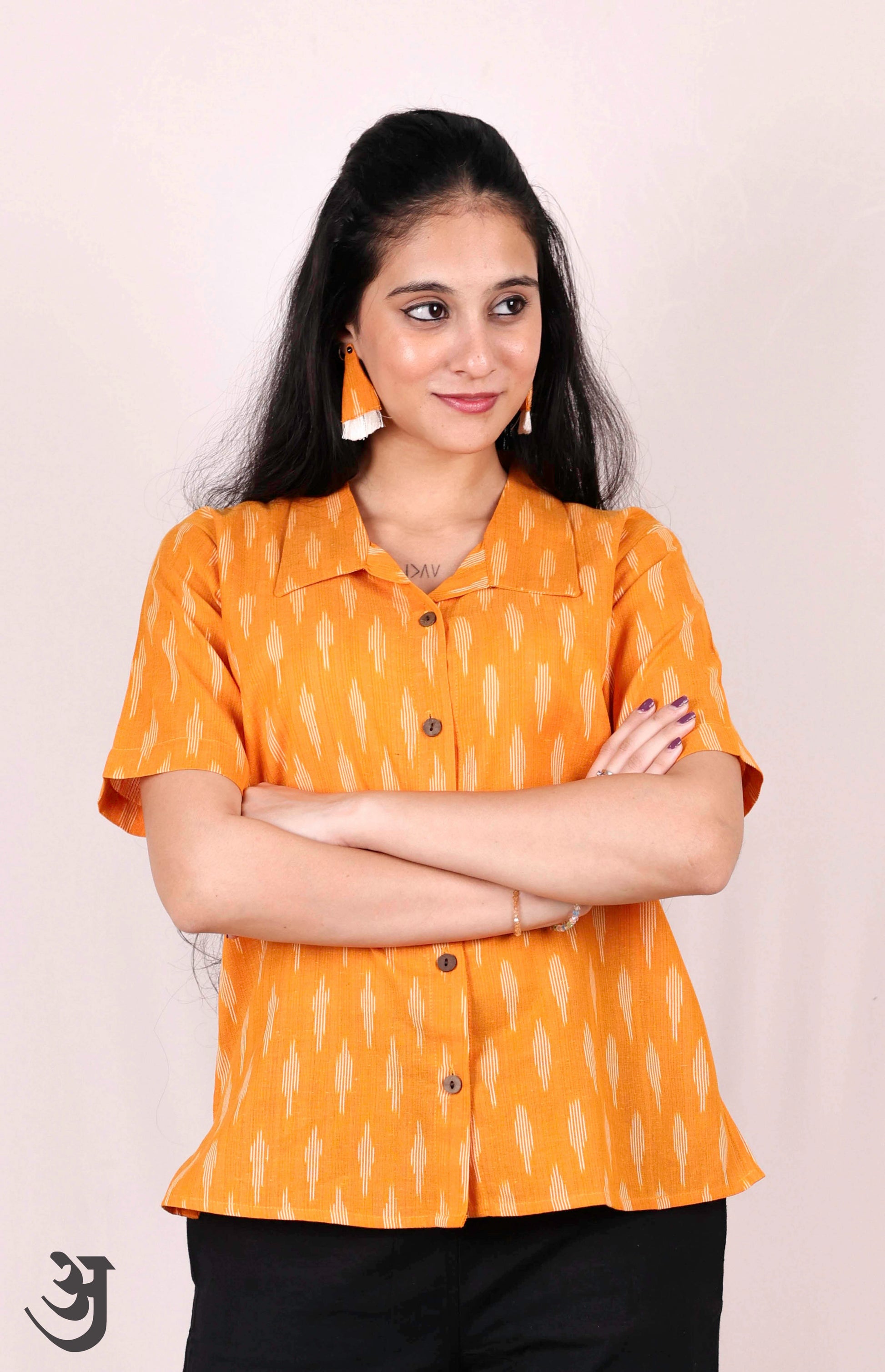Add a splash of color to your wardrobe with our vibrant Orange Ikat Shirt Top! Made from cotton and handloom, this playful top is perfect for any occasion. Don't be afraid to stand out and show off your unique style with this fun and quirky top!