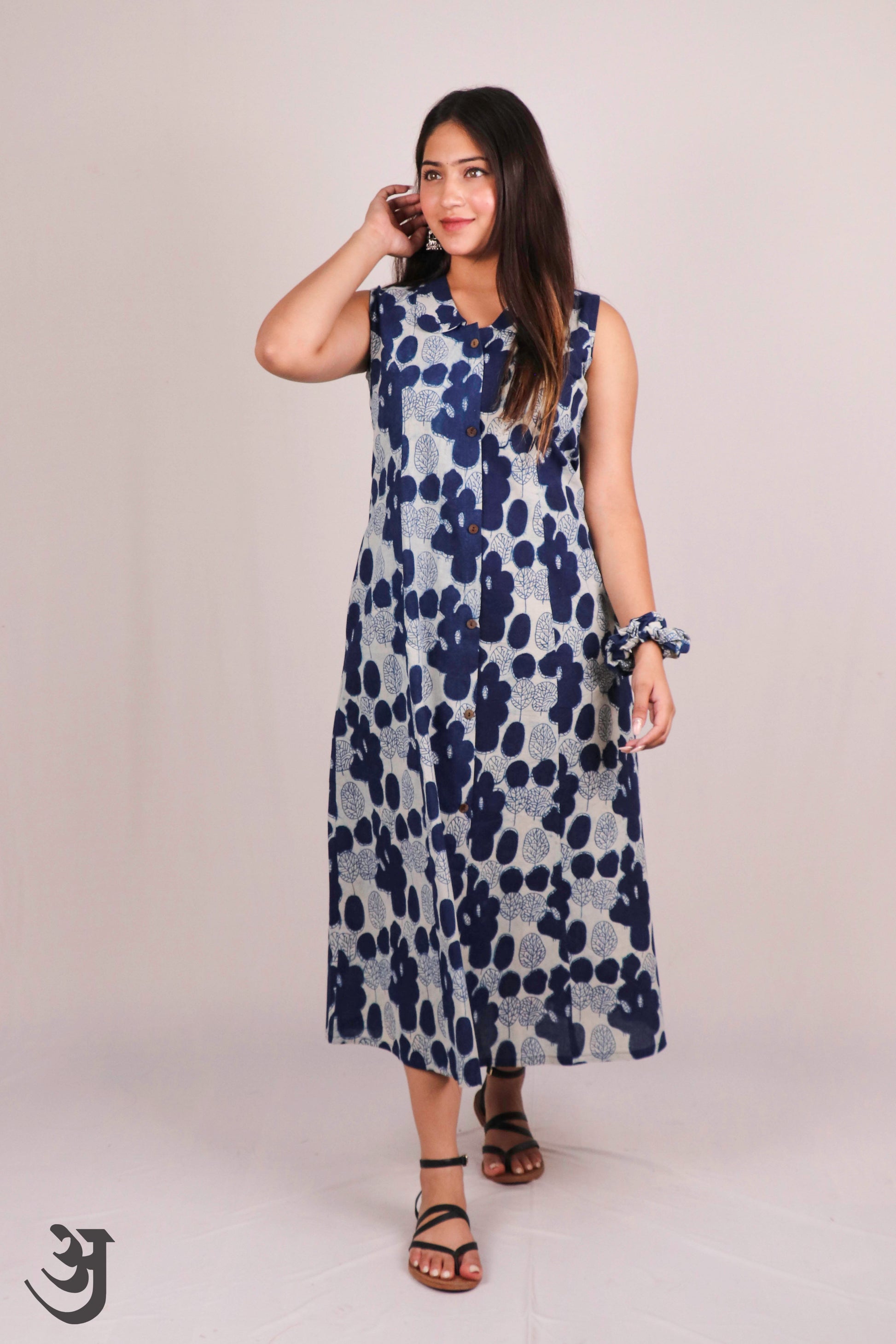 Experience the art of traditional Indigo Block print with our beautiful Aline One piece dress. Made with soft and comfortable cotton, this dress offers effortless style and comfort. Elevate your wardrobe with a touch of timeless elegance today!