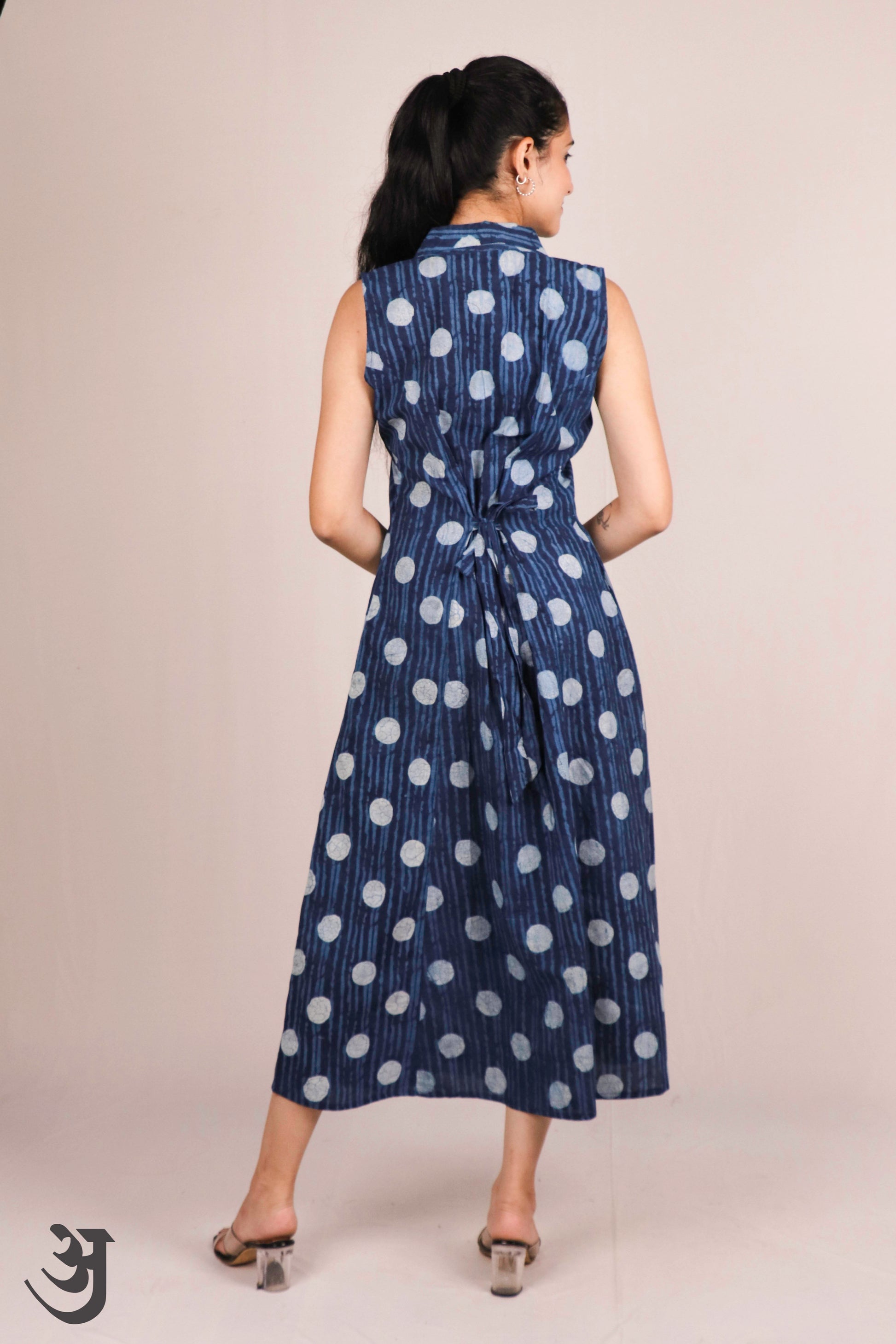 Experience the beauty of traditional Indian craftsmanship with our Indigo Block Print Aline/One Piece dress. Made with high quality cotton, this dress is not only stylish but also comfortable to wear. Show off your unique and elegant sense of style with this one-of-a-kind piece.